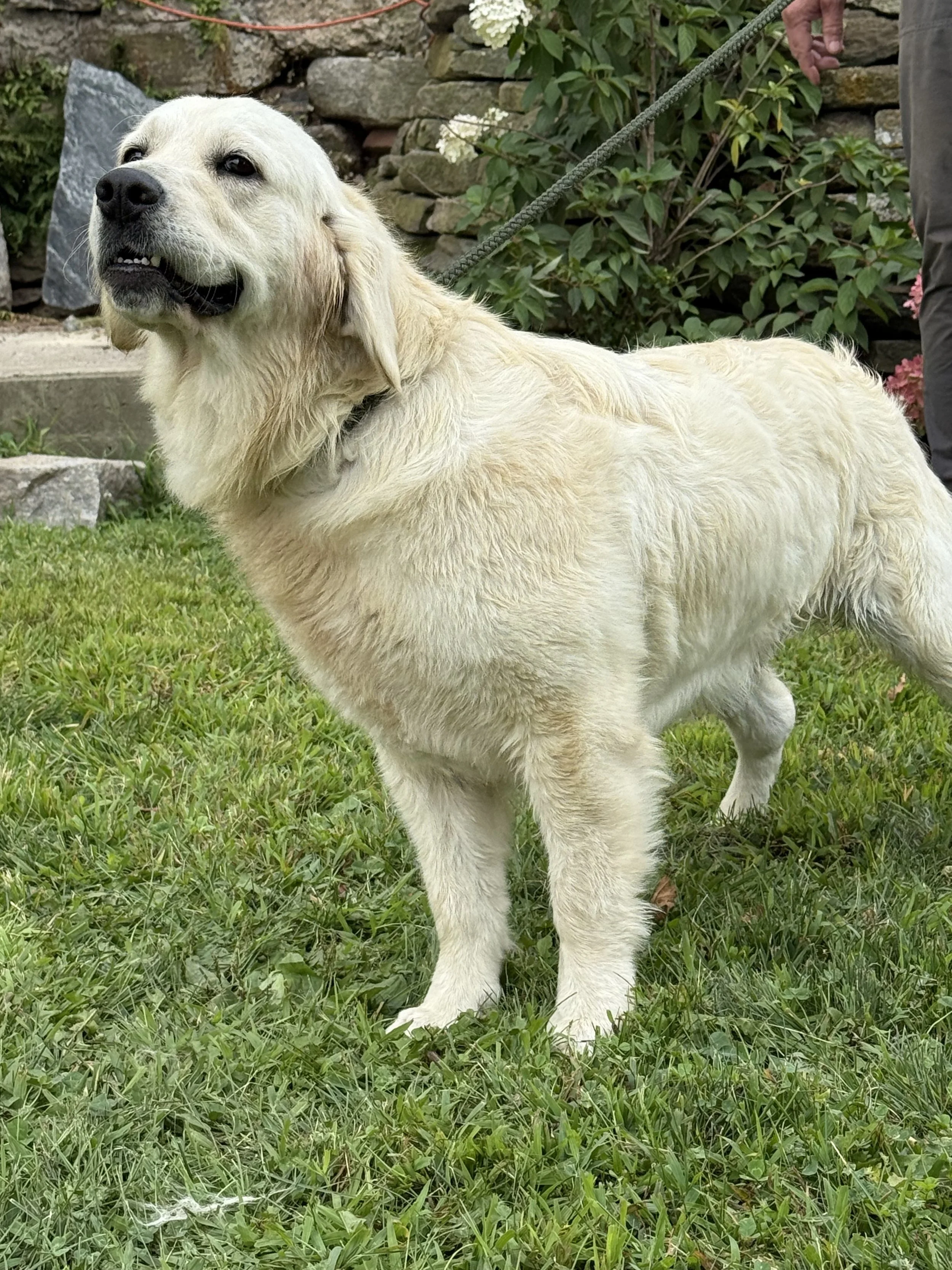 Personality: Curly is a highly sensitive young dog that came to us from Croatia at about 6 months of age. She is attune to a persons mood and demeanor and loves to beg for attention. She likes to sit very close and rest one paw on your leg at all times. This is a trait that she had from the very first moment we picked up her at Kennedy airport as she kept one paw on my arm the whole ride back home. She exhibits the perceptive nature that a Golden retriever is known for.